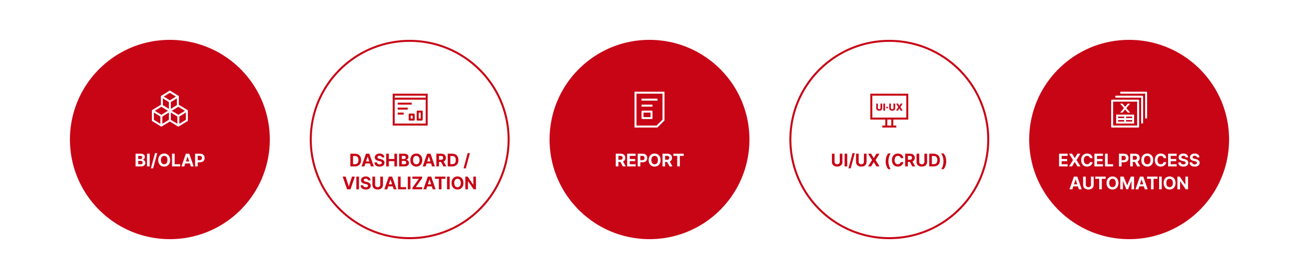 Traditionally, developing business systems required adopting multiple tools—BI/OLAP, Dashboard/Visualization, Reporting, and UI/UX—depending on the desired functionalities. This was due to the technical limitations of individual solutions, which could not provide all the features necessary for business system development. As a result, companies had to bear significant initial investment costs and ongoing operational expenses from adopting multiple solutions.